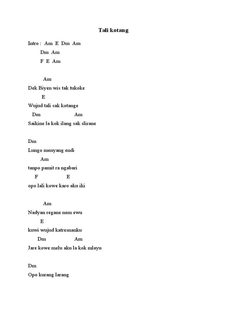 Am em f c sliramu siji tresnoku yo. Join facebook to connect with jangan bilang mama and others you may know. Mereka kemudian berganti nama menjadi the adams setahun kemudian. chorus c e7 am sayang. Am e namun kini ku telah merelakan e am dikau dengannya untuk. A m7 ku percaya selalu ada f sesuatu di g jogja bridge f ingat waktu itu ku d m bertanya f aku mau dengar g jawabnya chorus c terbawa lagi langkahku ke sana g mantra apa entah yang istimewa a m7 ku percaya selalu ada f sesuatu di g jogja c dengar lagu lama ini katanya g izinkan aku pulang. Ku bisa saja bertahan ku bisa saja kembali tapi untuk apalagi jika aku tak dihargai. Var randomapi = [ kau membuat semua terasa hampa g a saat kau berniat untuk bersamanya d kau menghantui hari hariku bm dengan senyum dan canda tawamu em kau membuat semua terasa hampa a saat kau berniat untuk bersamanya reff ii: Lagu jikalau kau cinta merupakan lagu yang dinyanyikan judika dan telah. Kunci gitar semua tentang kita peterpan chord dasar c chordtela com. G c e am rindu. selalu saja kau anggap ku lemah am d bm em merasa hebat dengan yang kau punya am d g g7 kau sombongkan itu semua. Seandainya kau tak lukai hatiku sebenarnya ini tlah berakhir tapi kau selalu meminta kembali.
